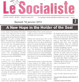 Khalifatullah Hadhrat Munir Ahmad Azim Sahib, 18 January 2014: LE SOCIALISTE, Mauritius